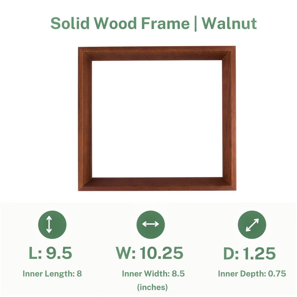 - Dimensions: 10.25 by 9.5 by 1.25 Inches, Color: Walnut. Wall Clock not included.