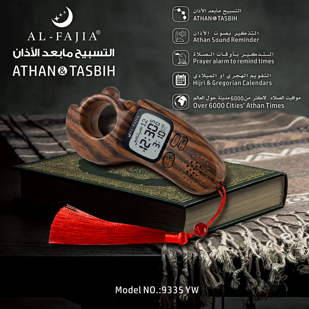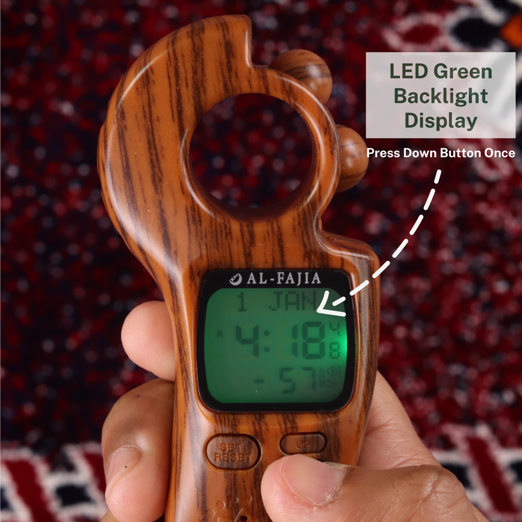 AL-FAJIA Digital Portable Tasbih Counter Azan Clock Reminder Islamic Auto Prayer Time (Light Brown)