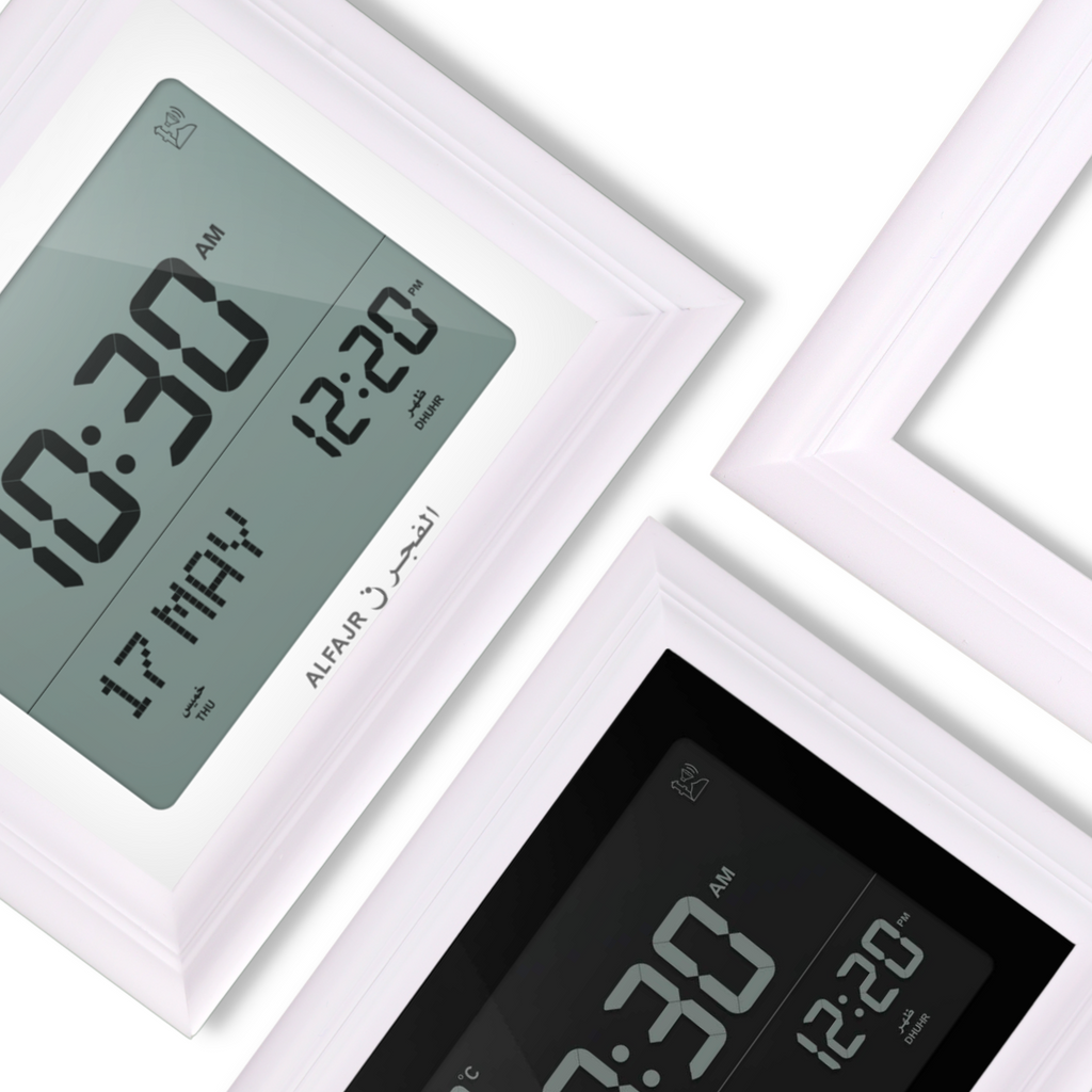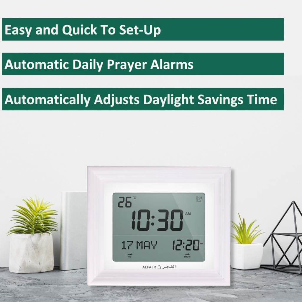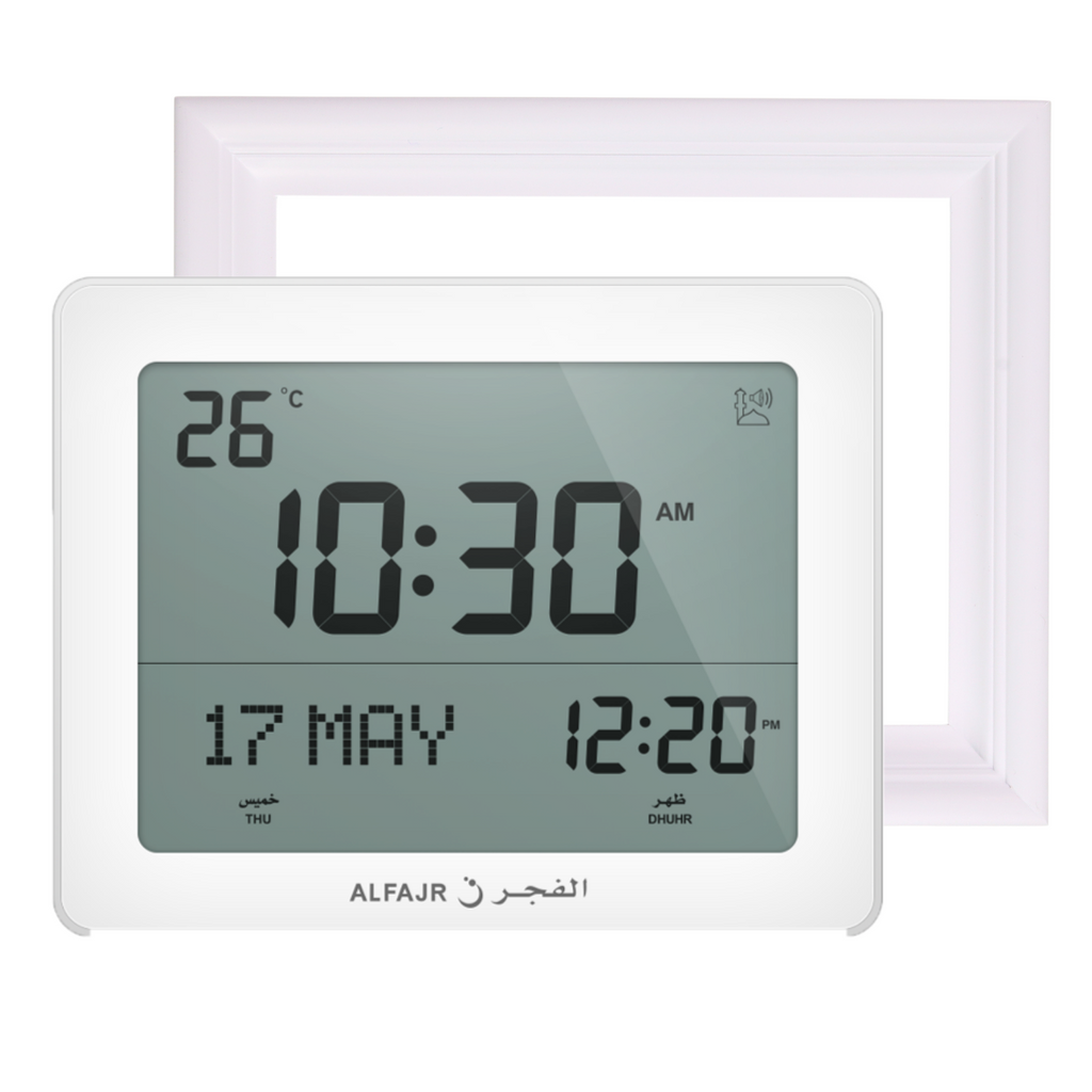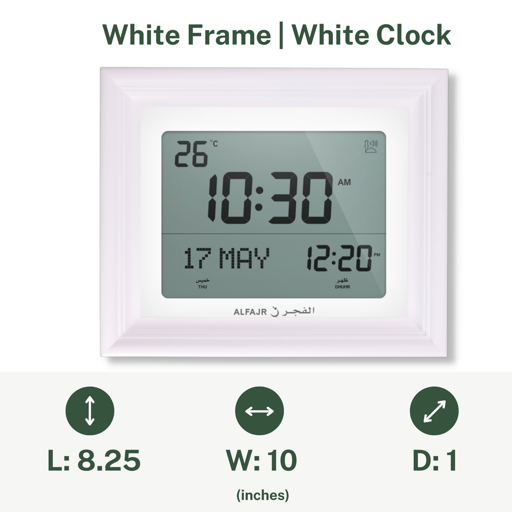 Alfajr CF-19 Azan Clock (White) with Detachable Solid Wood Frame (White)