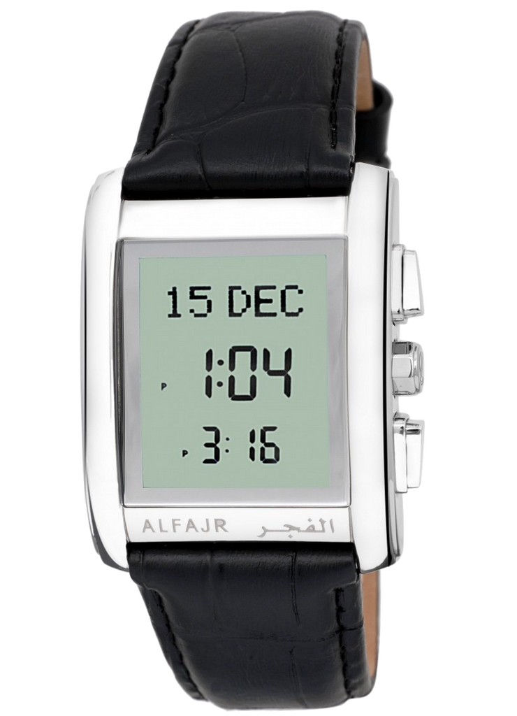 Alfajr WS-06L Stainless Steel and Genuine Leather Azan Prayer Watch - Black