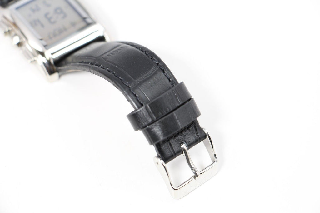 Classic Watch with Stainless steel Case and Genuine Black Leather Strap, FSTN LCD with Back light.