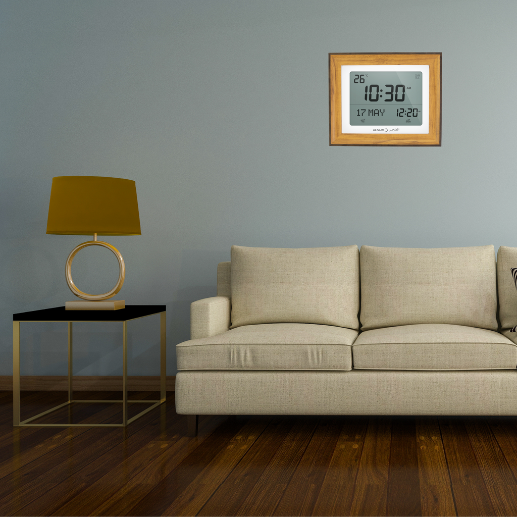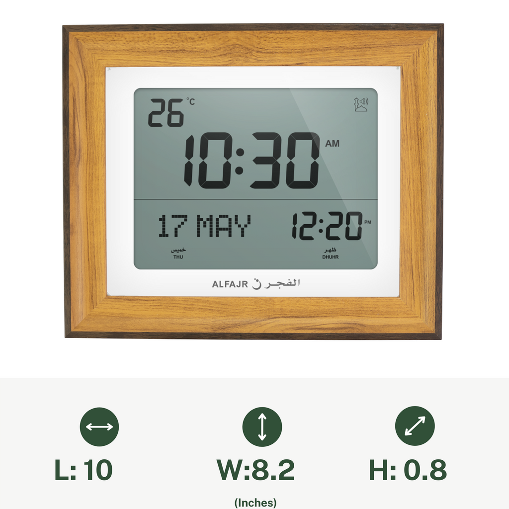 Alfajr CF-19 Azan Clock (White) with Detachable Frame (Light Brown)