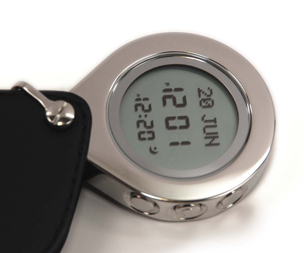 Pocket Watch with stainless steel case and leather purse, FSTN LED with backlight.