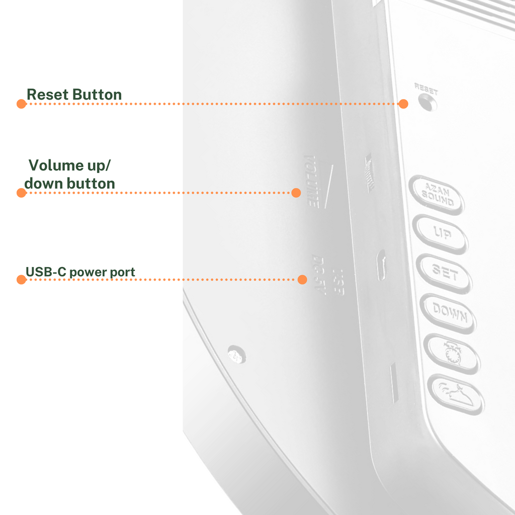 • AZAN SAFETY TIME: If required, athan times can be adjusted forward or backward by a fixed numbers of times.