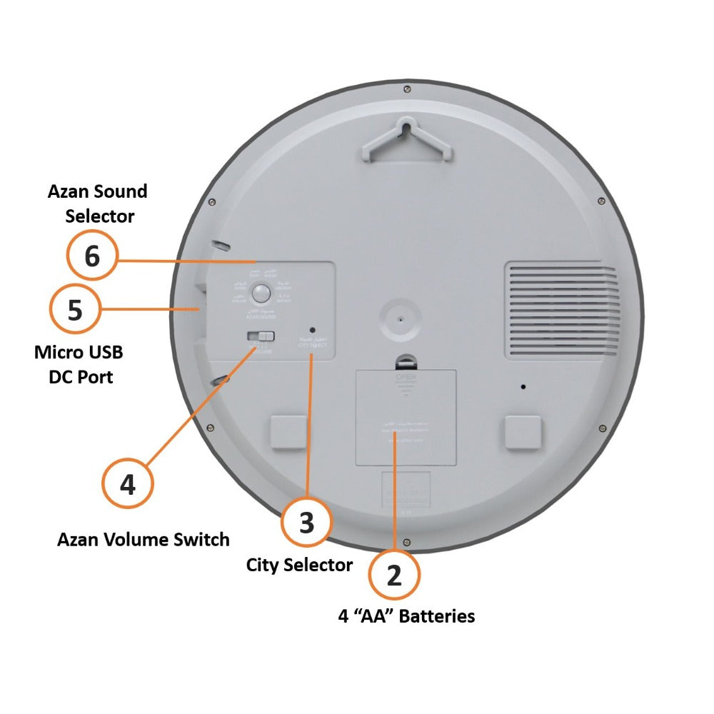 • Alfajr Islamic Analaog Digital Azan Round Wall Clock features major cities around the world are pre-programmed and any other location can be programmed using latitude, longitude and GMT information. Azan times are calculated accurately.