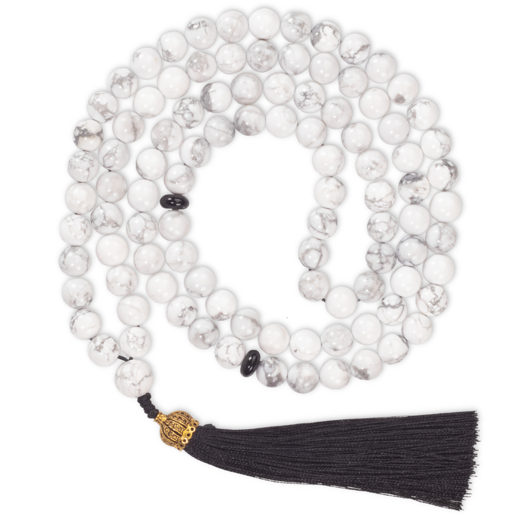 Made with Howlite stone, known as a calming stone that can help its wearer to reduce their own levels of stress and anger, as well as anger that is directed towards them. Howlite absorbs negative energy and its calming qualities are thought to also help reduce insomnia as it relieves and unburdens an overactive mind.