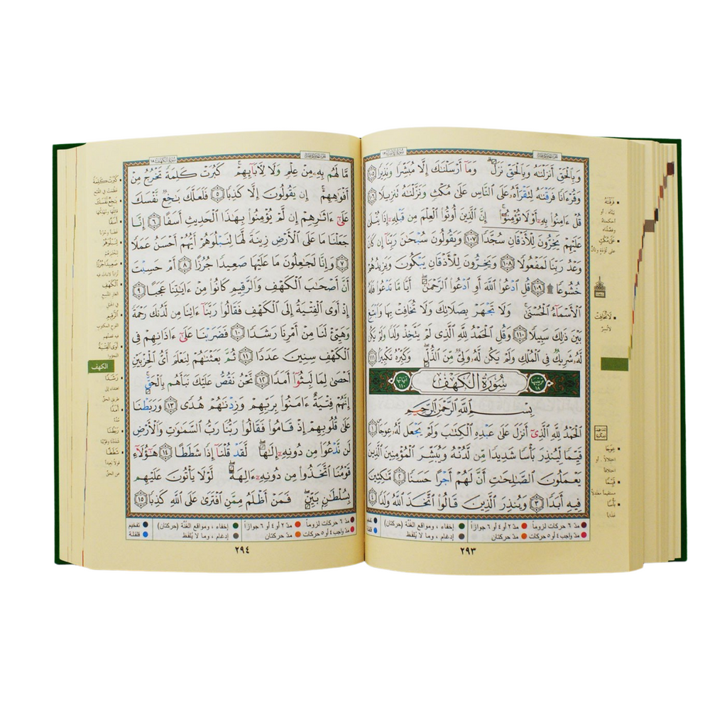 The X-Large Mosque size (10 "x 14") can be easily carried in a bag, so it's the perfect choice for travelers since it does not take place and the weight is light, it's quite popular amongst youngsters. Based on a practical understanding of phonology, we have color-coded some letters to facilitate the correct recitation of the holy Quran. This enabled us to classify these letters into three possible categories to enhance the reader's knowledge and remembering of Tajweed rules: